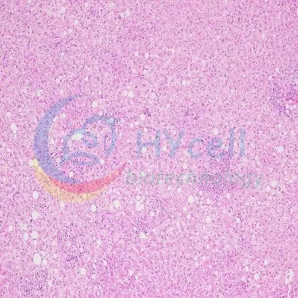 适应性饲养1周,连续10周高脂饲料喂养,10周后断头取材肝脏组织。油红O检测肝脏脂滴情况,HE染色检测肝脏病理情况。